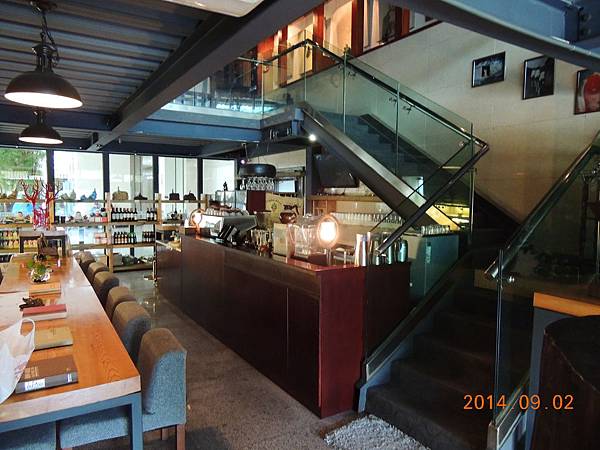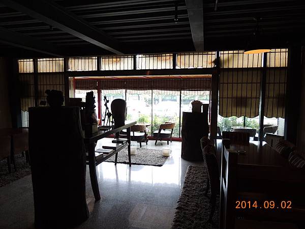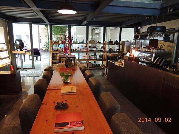 共有兩層樓,陳設簡潔,桌上放有書籍,店內還有許多木雕、石雕,充滿濃濃的人文氣息。