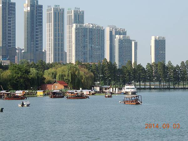湖畔能見到高樓鱗次櫛比,應該是價格不菲的湖景公寓。