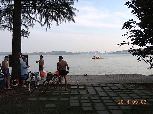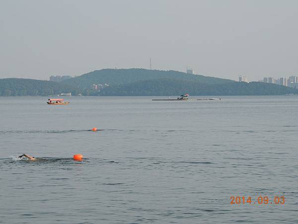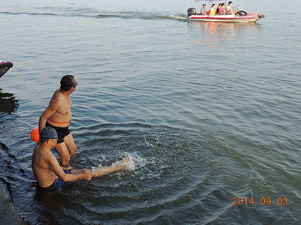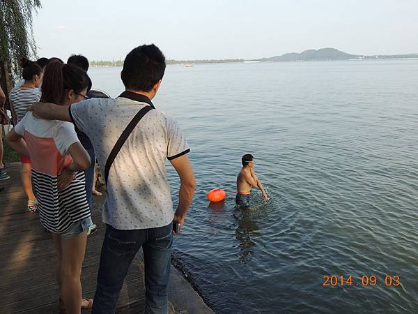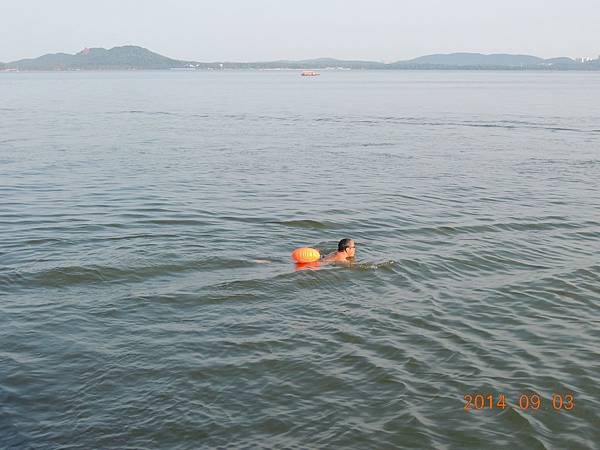 幾位大叔,奮勇入湖健泳,令人讚嘆。
