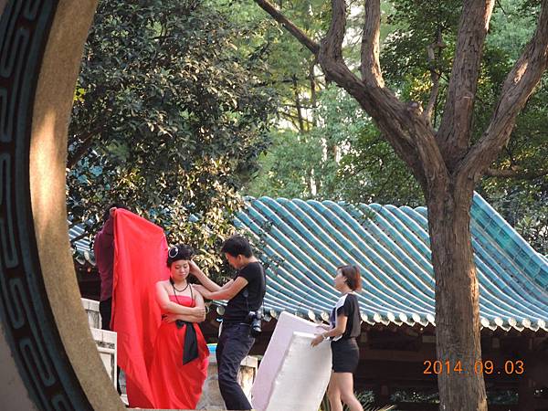 心想這麼好的景緻,怎麼沒人來拍婚紗,就見到一組新人。